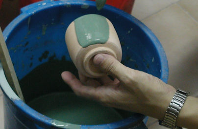 画好的瓷坯,粗糙而又呆涩,上好釉后则全然不同,光滑而又明亮:不同的上釉手法,又有全然不同的效果,常用的上釉方法有浸釉、淋釉、荡釉、喷釉、刷釉等。